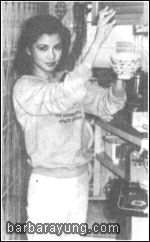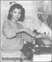 登台返港后,她用赚来的钱,加上全部积蓄,五十萬元卖下了契爷张冲80平方米的伟锦园旧宅,重新装修后,请记者到家中拍照,并亲自下厨做饭。(黑白照两张)。
